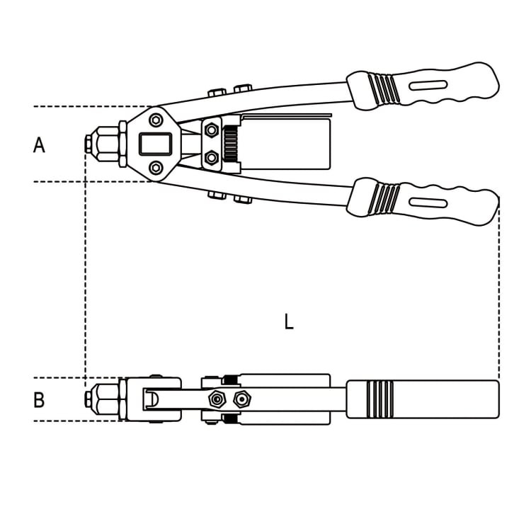 Alumínium és rozsdamentes szegecsekhez280 mm: ø 2,4÷4,8 mm