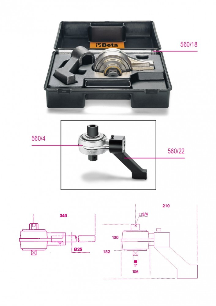 Beta 564-3R/V Nyomatéksokszorozó jobb- és bal irányú meghúzáshoz áttétel 25:1 visszaütésgátlóval fémdobozban