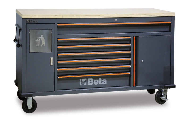 • 4 robusztus forgókerék, Ø 150 mm (egy fékezhető)