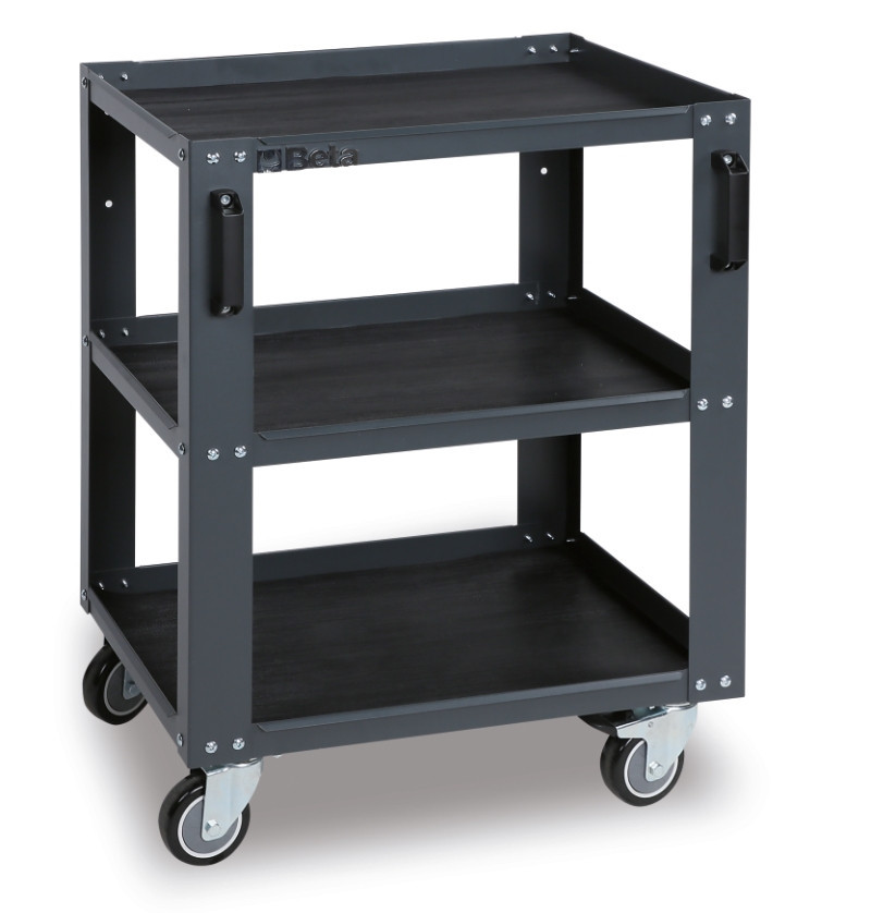 Jellemzők: • A középső polc kétféleképpen is rögzíthető • 4 forgókerék Ø 100 mm (kettő fékezhető) • Statikus terhelhetőség: 200 kg (3 polc között elosztva)