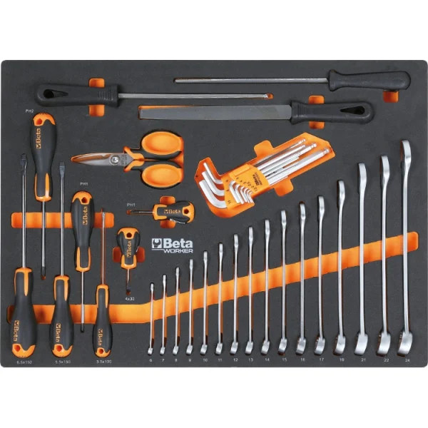 196 darabos Beta Worker szerszámkészlet puha, EVA habszivacs tálcában, univerzális alkalmazásra