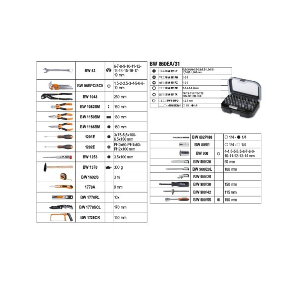 A szerszámkészlet tartalma: